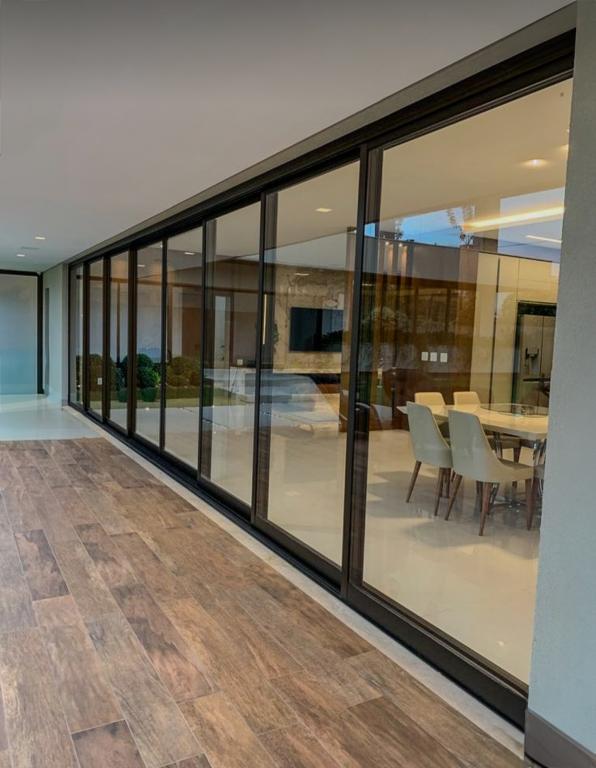 • Porta de Correr de Vidro e Alumínio: combina a leveza do vidro com a resistência do alumínio, proporcionando amplitude e luminosidade.